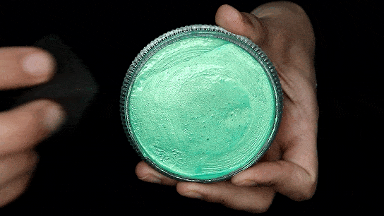 If you are using powdered face paints, such as Mehron Intense Powders or Starblends, do not activate them with water, but apply them dry with a smoothie blender or lollipop applicator.