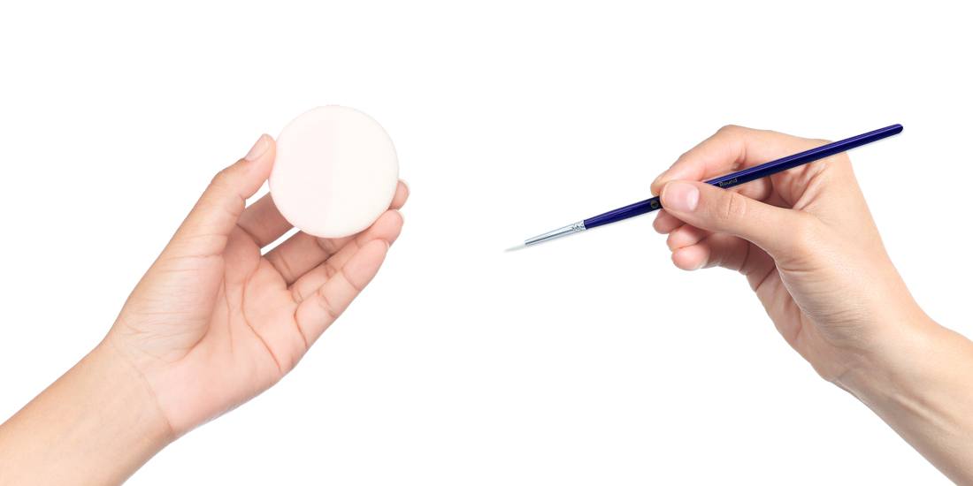 Makeup brush—Useful for covering large areas with an even, stroke-free finish comparable or even superior to sponges.