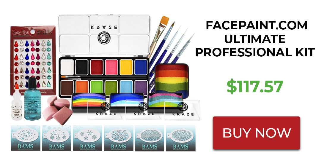 At the beginning, it can be difficult to know what you should purchase in order to be able to paint at a party professionally. The Facepaint.com Ultimate Professional Kit is the kit which will give you the tools you need for this, however, and it has enough face paint in it to do many faces, so you won't run out of makeup. If you are doing a volunteer event with a high number of guests, you might want an extra white and extra black for it, though. If your children love to be face painted, this is also a good kit to consider for that purpose.