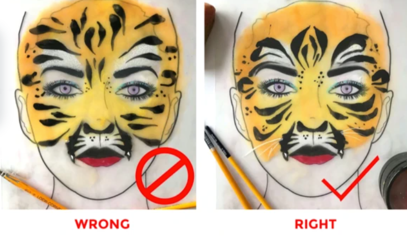 Teardrops and swirls are two strokes that you’ll need to know how to do in order to be a successful face painter. While it may not seem like a difficult skill to learn, beginner face painters can struggle to make them consistently. Teardrops and swirls are used for a wide variety of designs including princesses, floral masks, animal faces, monsters, and many more.